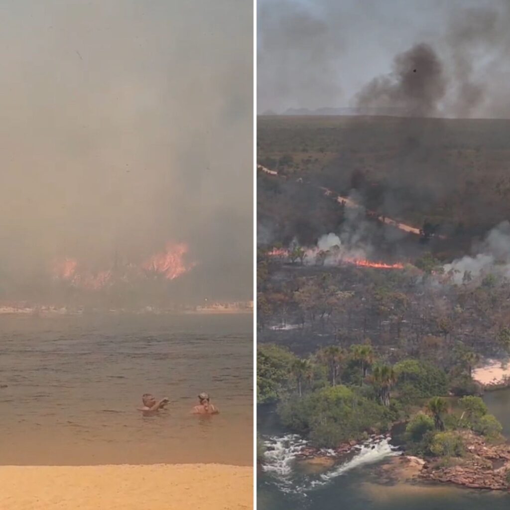 No fim de semana, o fogo chegou até margens do Rio Novo e turistas que estavam no local conhecido como Prainha registraram as chamas consumindo a vegetação. O rio é considerado um dos maiores de água potável do mundo.