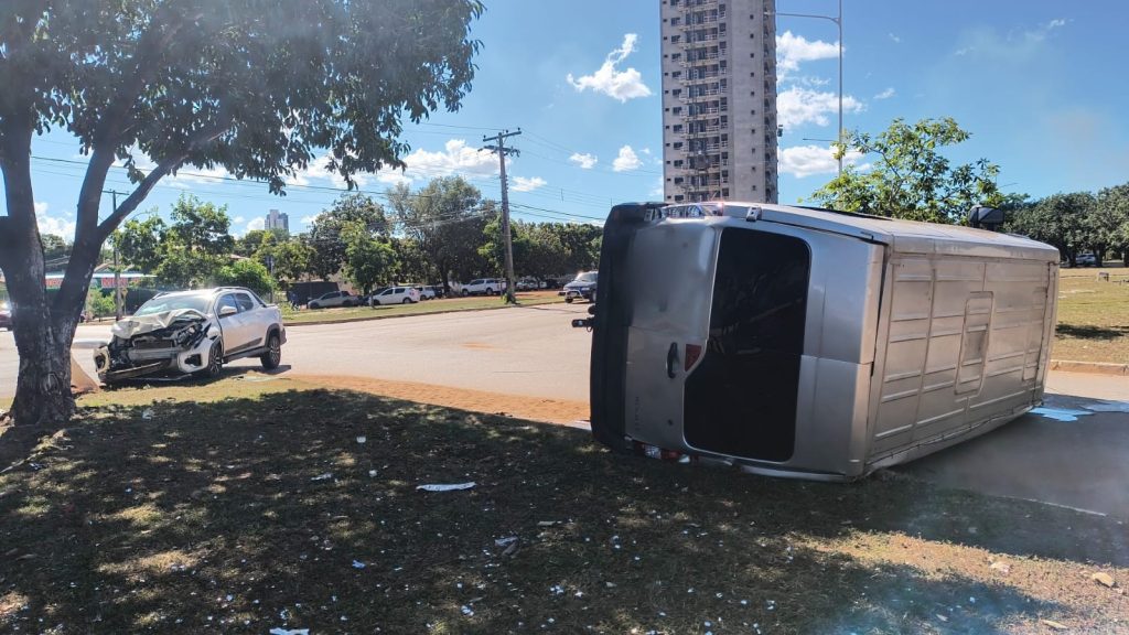 Com o impacto, a van tombou e pedaços de vidro ficaram sobre a pista, e canteiro da avenida NS-06. A frente da caminhonete ficou completamente destruída. Ainda não há informações sobre o estado de saúde do motorista.