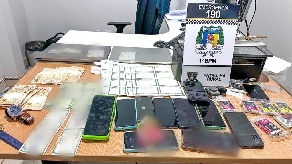 Conforme a investigação, os suspeitos utilizavam identidades falsas, cartões de crédito de terceiros e cédulas de identidade em branco para fazer dívidas em nome de outras pessoas. Grupo foi preso quando tentava aplicar golpe no centro de Palmas. Celulares e cédulas para confecção de documentos falsos apreendidos pela Polícia Militar