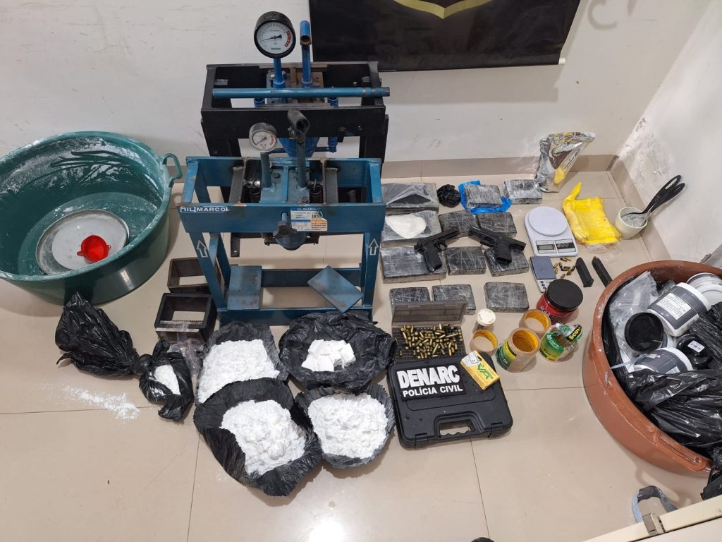 Operação fecha laboratório com mais de 10 kg de cocaína, armas e munições e prende dois suspeitos durante fuga