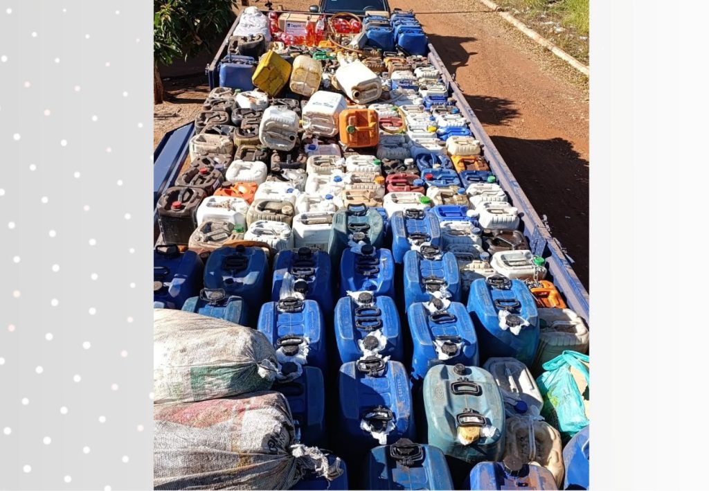 Embalagens com combustíveis e agrotóxicos apreendidos pela Polícia Civil, em Araguatins