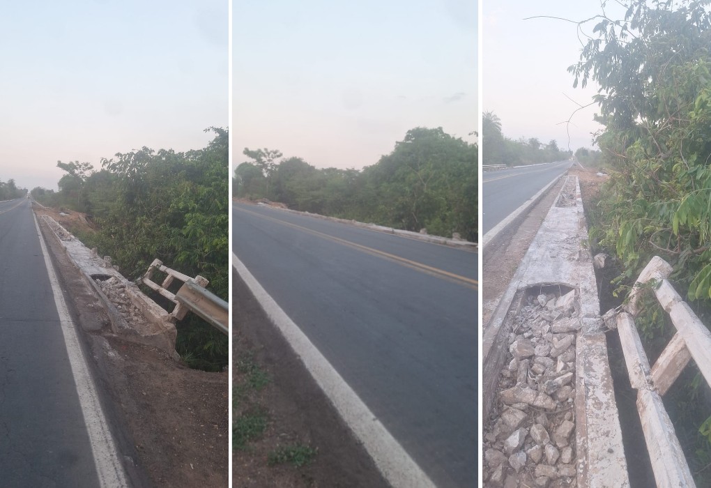 Moradores reclamam da falta de reparos na barreira de segurança de ponte na BR-153