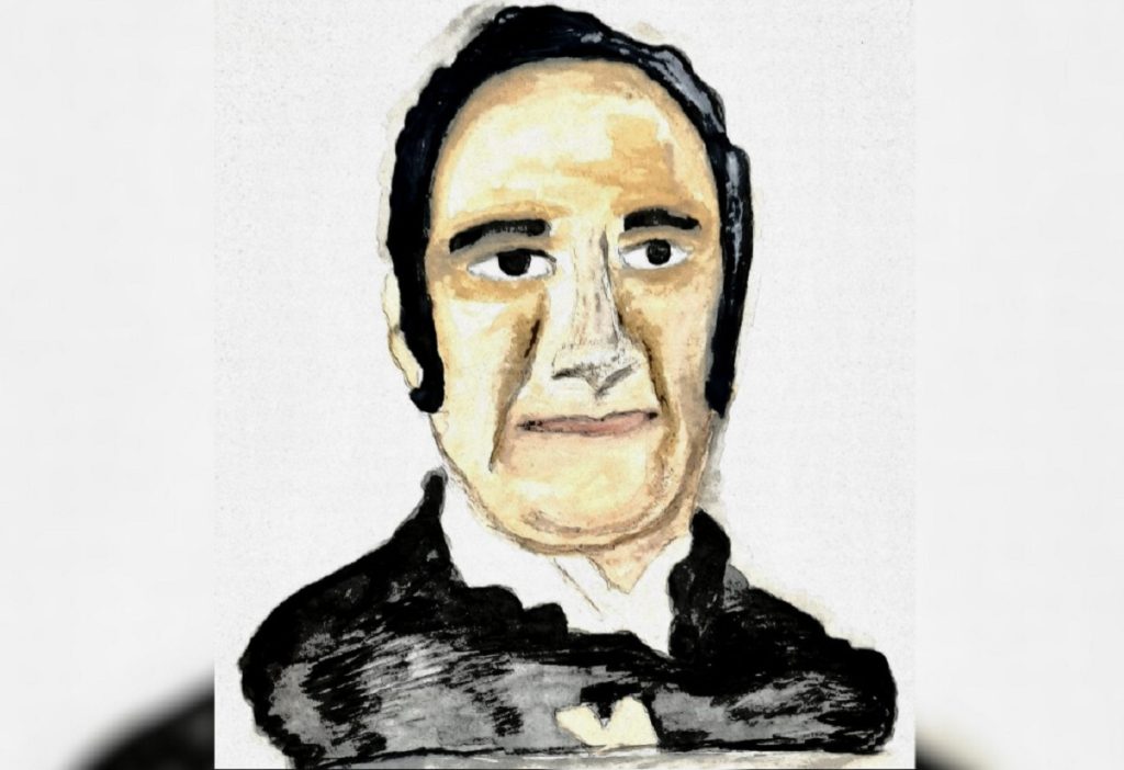 Pintura de aquarela ilustrando Teotônio Segurado, feita por Kátia Maia Flores