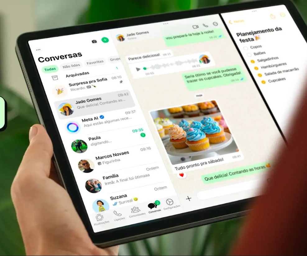 “Dessa forma, você pode enviar mensagens enquanto navega na web ou pesquisar opções para uma viagem em grupo durante uma ligação. O WhatsApp também funciona com o Magic Keyboard (teclado) e o Apple Pencil (caneta)”, completou a empresa.